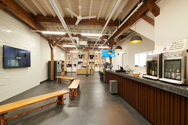 山本酒造店が展開する、マイクロブリュワリーとカフェを併設した新しいスタイルの施設です。ブリュワリー部分はガラス張りになっており、カフェでは酒造りの様子を見学しながら、目の前で造った限定の生酒を飲み比べできます。また、限定のコーヒーや料理の提供、日本酒の量り売りも行っており、その場でお酒を飲まなくても楽しめる、居心地の良い空間です。