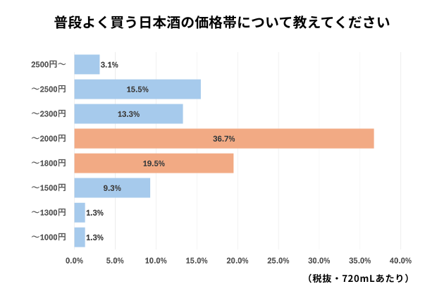 今回の回答者は、平均的な日本酒消費者と比べて、比較的高い価格帯の日本酒にも日常的に接している層であるようです。つまり、今回のアンケートは、日本酒市場全体の平均像を示すものではなく、現在の日本酒消費を支えている比較的コアな消費者層が、価格帯をどのように認識しているのかを捉えたものだと考えることができます。