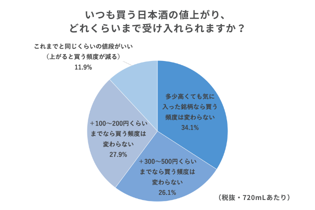 もちろん、日本酒の熱心な消費者層が回答者に多かったことを踏まえると、ライトユーザー層は値上げに対応しきれない可能性は大いにあります。しかし、日本酒というジャンルを選び支える層が離れていってしまわないために、なにが問われているのかが見える結果となったとはいえるでしょう。